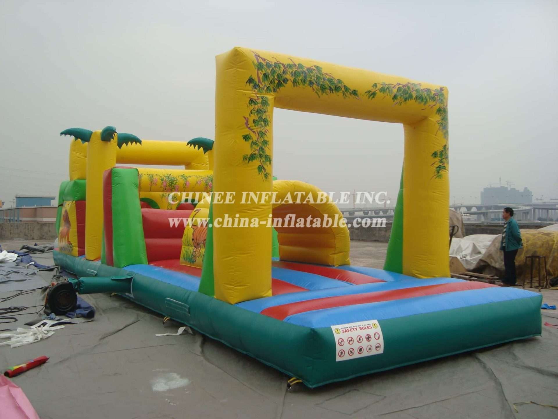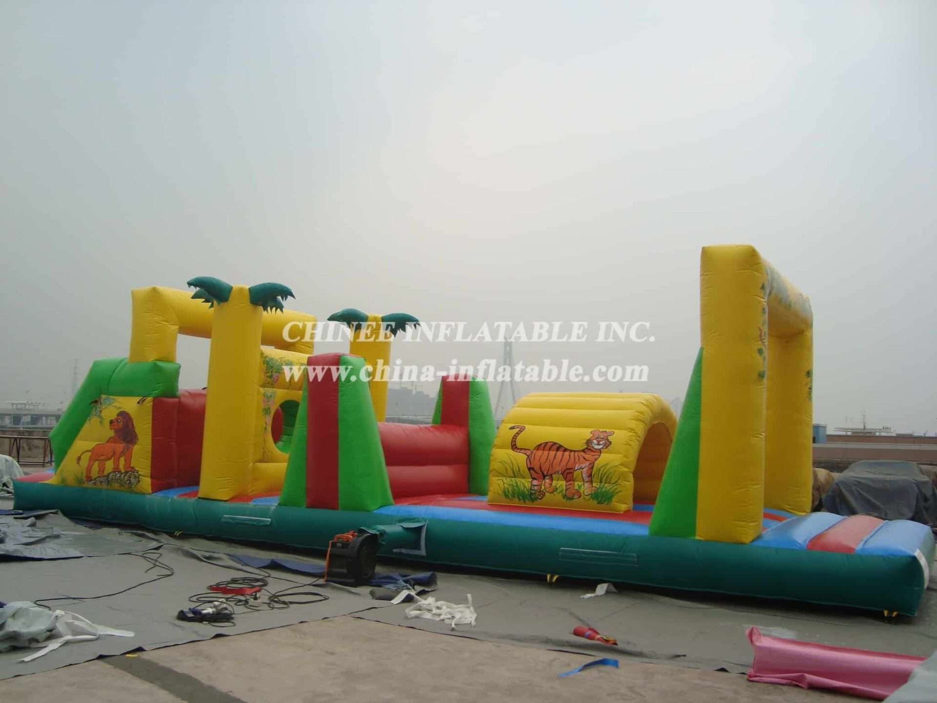 T7-346 Pistas de obstáculos insufláveis com tema da selva